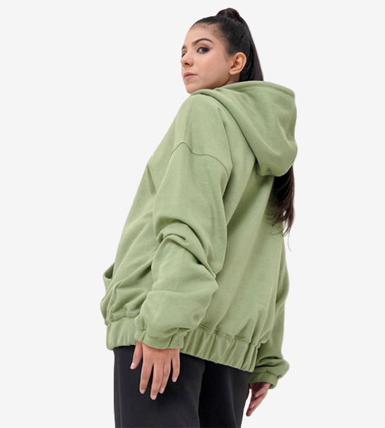 Relaxed Fit Oversized Zipper Hoodie- sage green