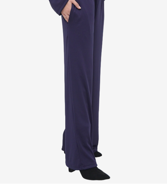 Roll-Neck Long Shirt with Wide-Leg Pant - Chocolate brown / Navy blue